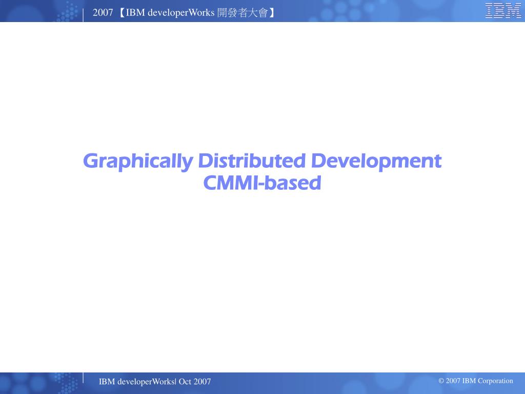 Graphically Distributed Development • CMMI • Focus on Management Level instead of Engineering Level