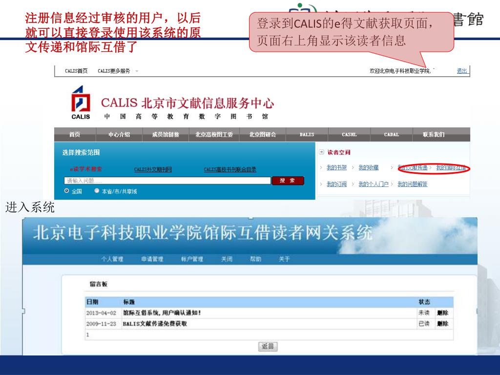 北京电子科技职业学院馆际互借系统读者使用流程北京电子科技职业学院馆际互借系统读者使用流程 2013-4-3