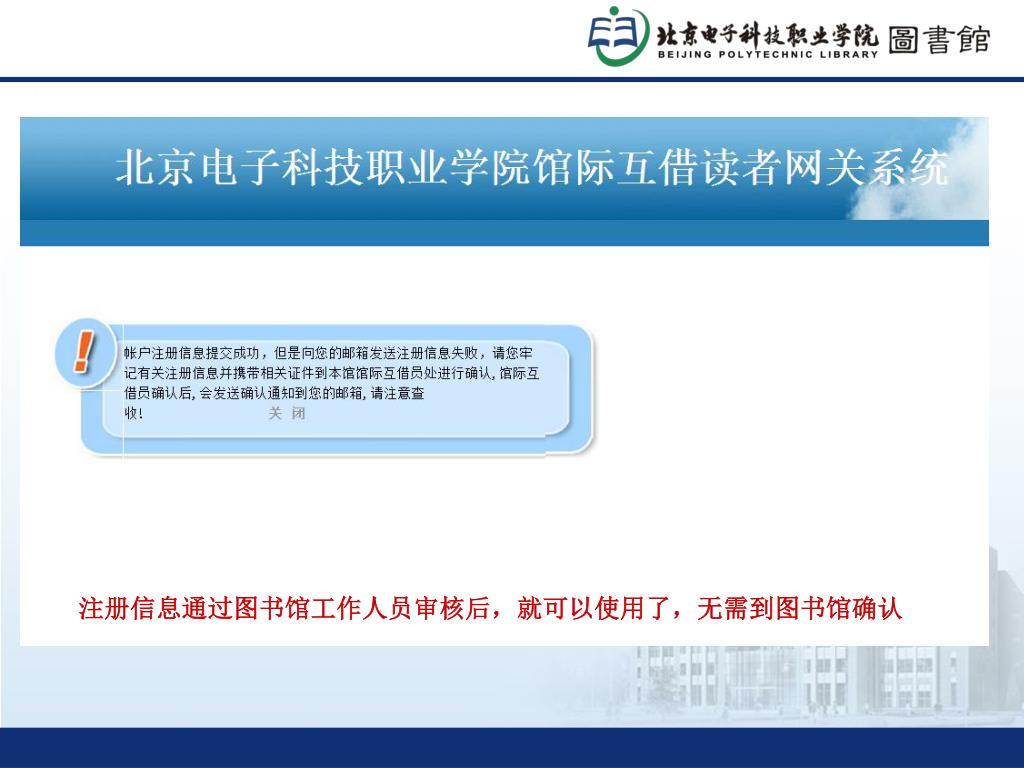 注册信息通过图书馆工作人员审核后,就可以使用了,无需到图书馆确认注册信息通过图书馆工作人员审核后,就可以使用了,无需到图书馆确认