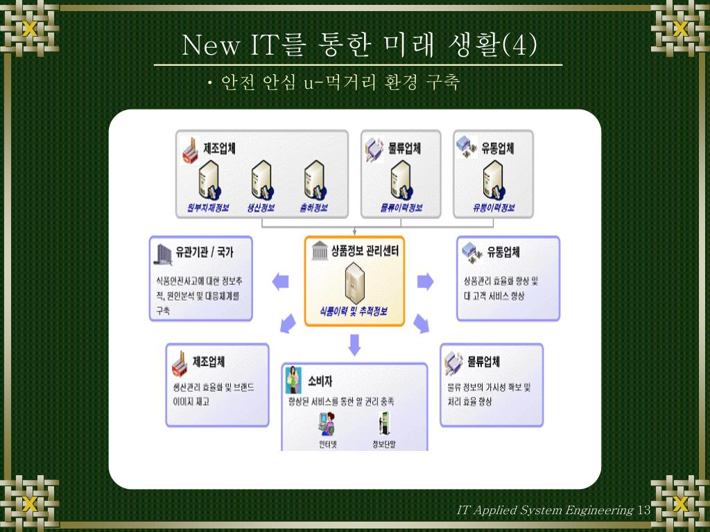 New IT를 통한 미래 생활(4) 안전 안심 u-먹거리 환경 구축 IT Applied System Engineering 13