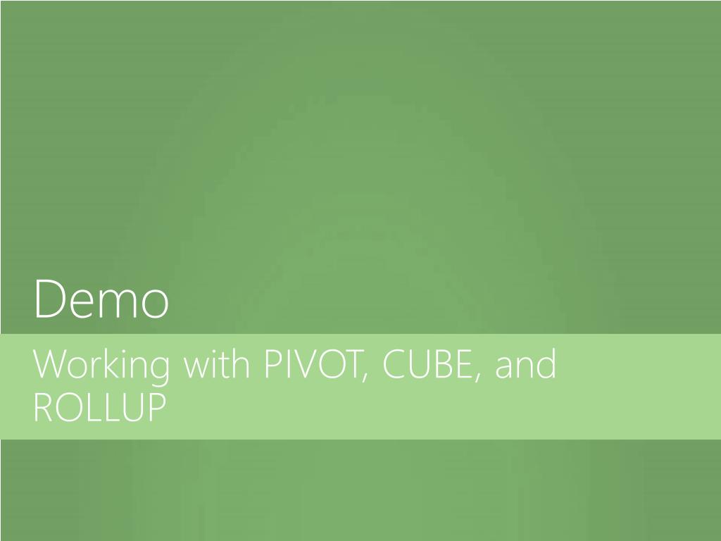 Demo Working with PIVOT, CUBE, and ROLLUP