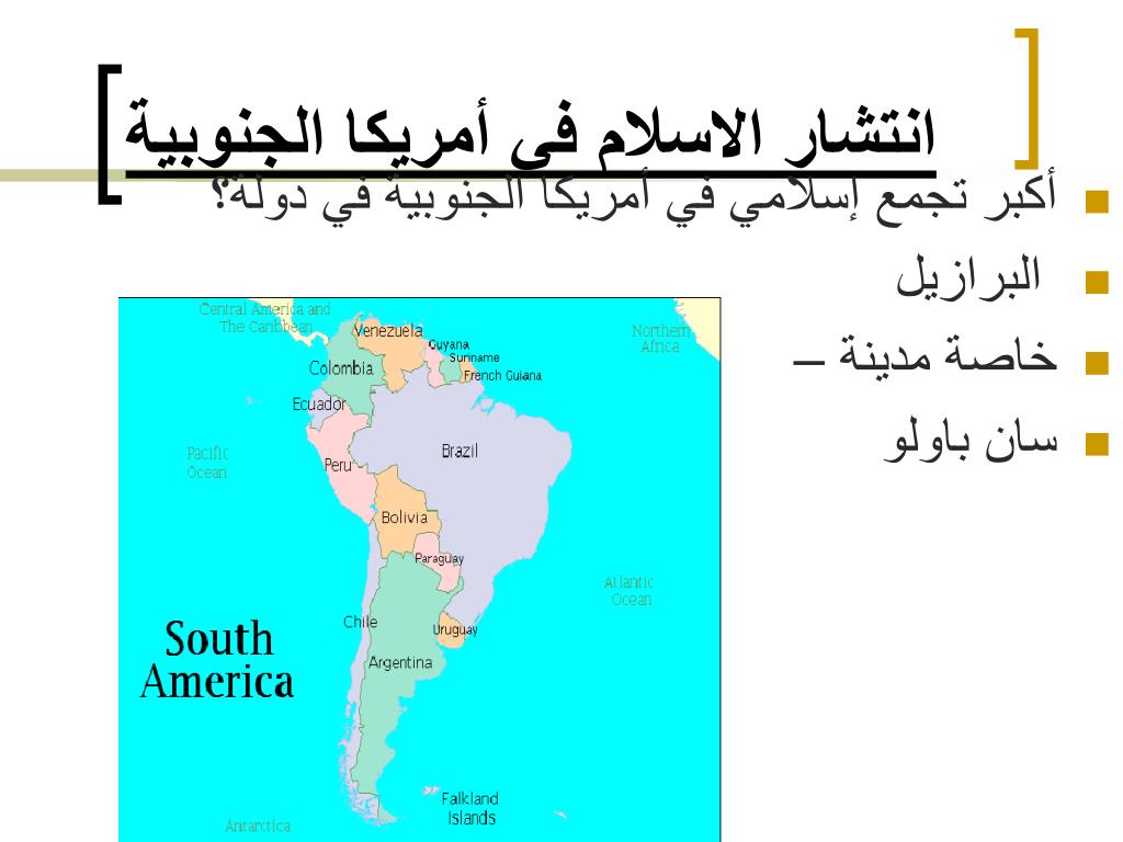 انتشار الاسلام في أمريكا الجنوبية • أكبر تجمع إسلامي في أمريكا الجنوبية في دولة؟ • البرازيل • خاصة مدينة – • سان باولو