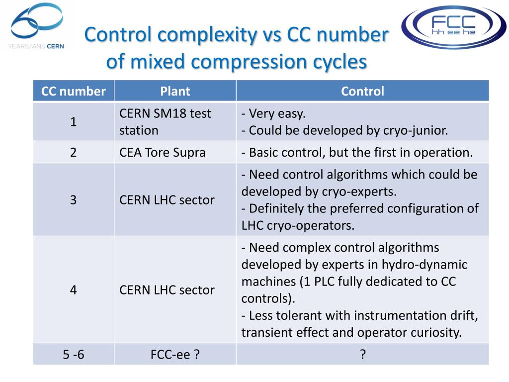 Recovery time of a cold compressor trip vs CC number CC3 AL unit stop (3 CC): ~ 3 hours of recovery time IHI-Li unit stop (4 CC): ~ 7 hours of recovery time CC2 CC1 CC4 CC3 CC2 CC1 L. Tavian – FCC study kick-off meeting – Cryogenics – 14 February 2014