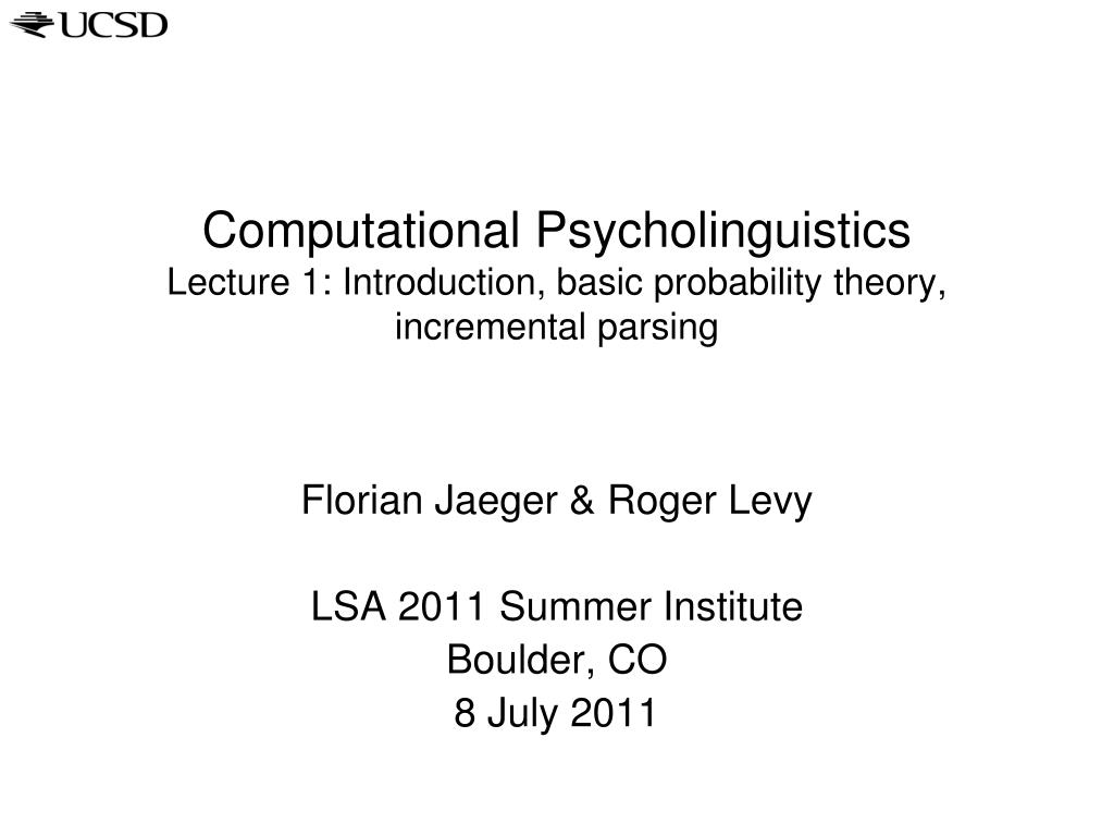 Computational PsycholinguisticsLecture 1: Introduction, basic probability theory, incremental parsing Florian Jaeger & Roger Levy LSA 2011 Summer Institute Boulder, CO 8 July 2011