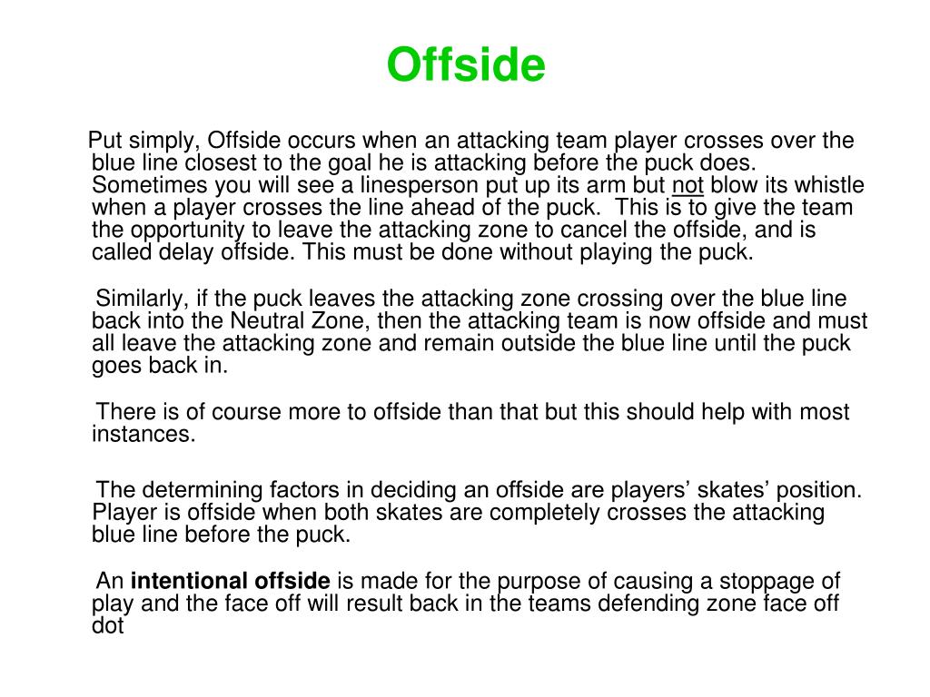 Stoppage of play • There are two main rules that you will see that will cause a stoppage of play are • Offside • And • Icings.