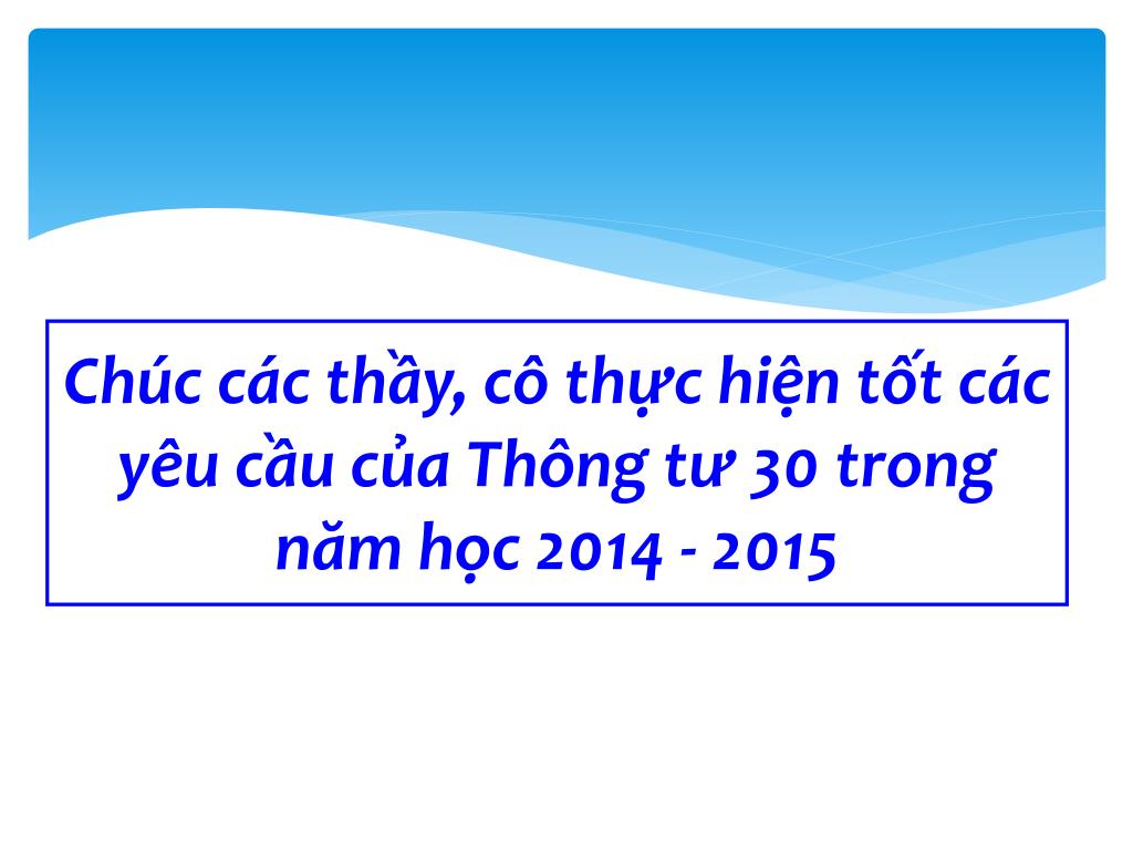 Chúc các thầy, cô thực hiện tốt các yêu cầu của Thông tư 30 trong năm học 2014 - 2015