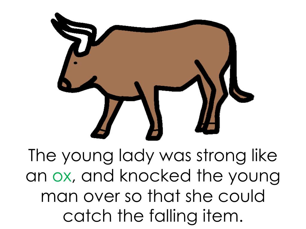 The young lady was strong like an ox, and knocked the young man over so that she could catch the falling item.