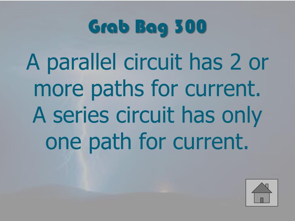 Grab Bag 300 A parallel circuit has 2 or more paths for current.A series circuit has only one path for current.