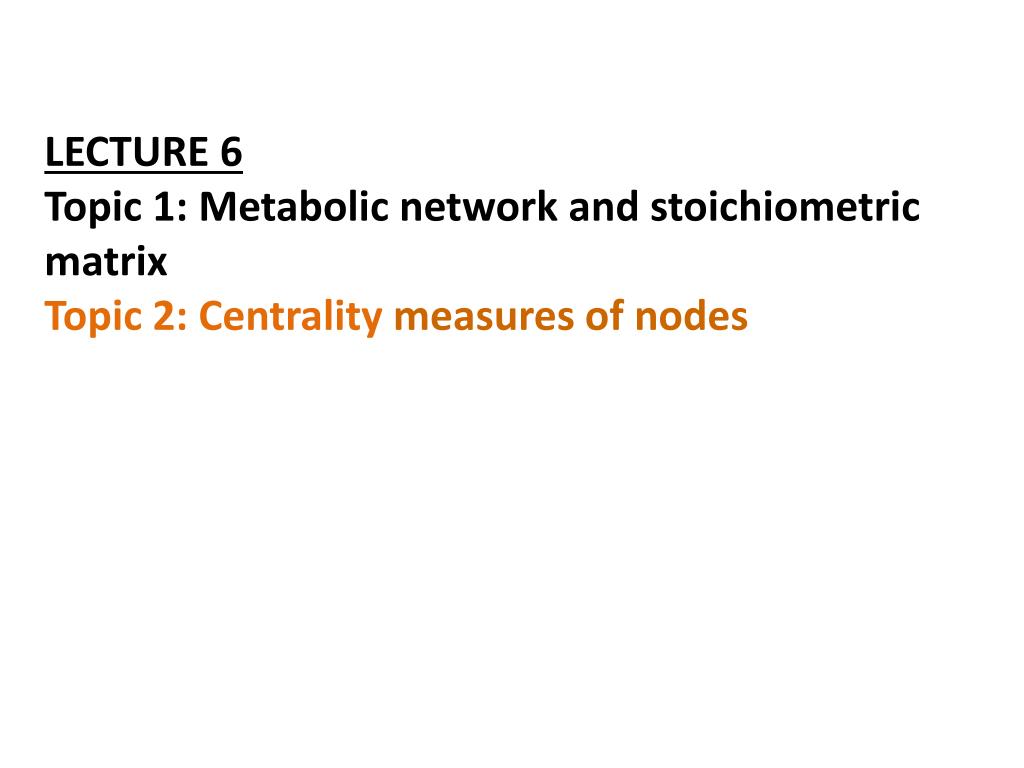 LECTURE 6Topic 1: Metabolic network and stoichiometric matrixTopic 2: Centrality measures of nodes