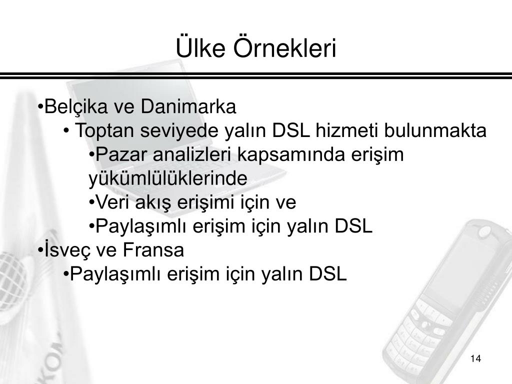 Ülke Örnekleri • Belçika ve Danimarka • Toptan seviyede yalın DSL hizmeti bulunmakta • Pazar analizleri kapsamında erişim yükümlülüklerinde • Veri akış erişimi için ve • Paylaşımlı erişim için yalın DSL • İsveç ve Fransa • Paylaşımlı erişim için yalın DSL