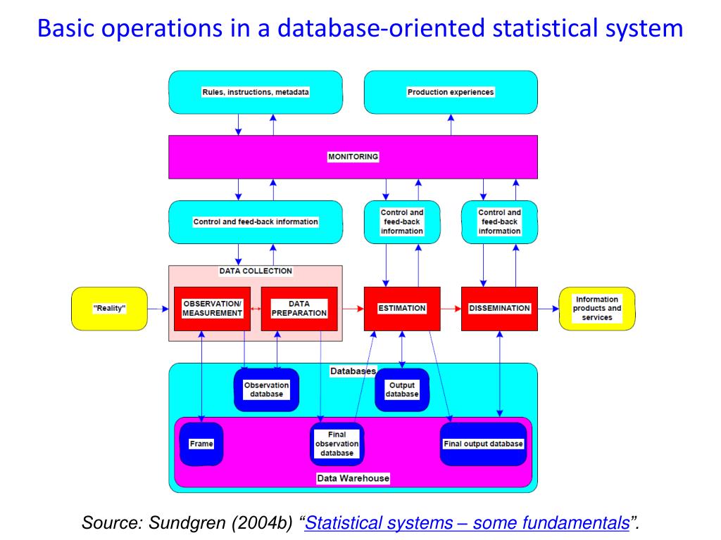 Basic operations in a database-oriented statistical system Source: Sundgren (2004b) “Statistical systems – some fundamentals”.