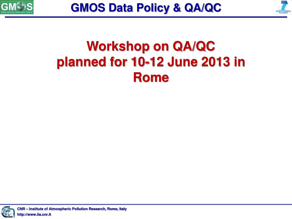 GMOS Data Policy & QA/QC • Workshop on QA/QC • planned for 10-12 June 2013 in Rome CNR – Institute of Atmospheric Pollution Research, Rome, Italy http://www.iia.cnr.it