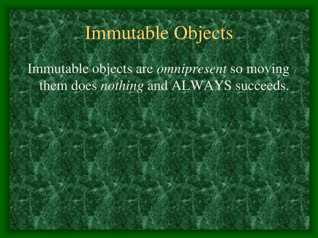 Immutable Objects Immutable objects are omnipresent so moving them does nothing and ALWAYS succeeds.