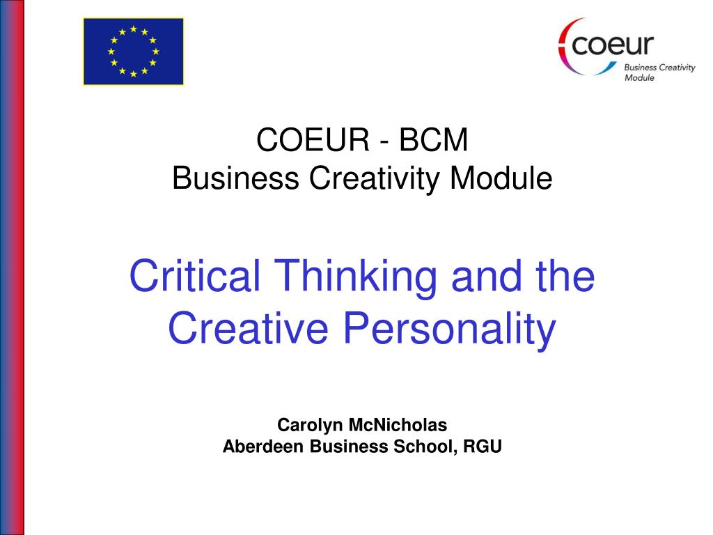 COEUR - BCMBusiness Creativity ModuleCritical Thinking and the Creative Personality Carolyn McNicholasAberdeen Business School, RGU