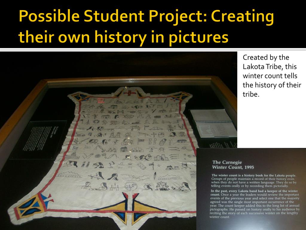 Possible Student Project: Creating their own history in pictures Created by the Lakota Tribe, this winter count tells the history of their tribe.