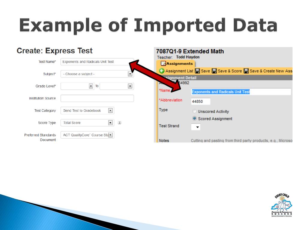 Example: Set Up a CIITS Express Test to send to IC Gradebook • 1. Create an Express Test in CIITS • 2. Choose Send Test to Gradebook in the Test Category drop-down