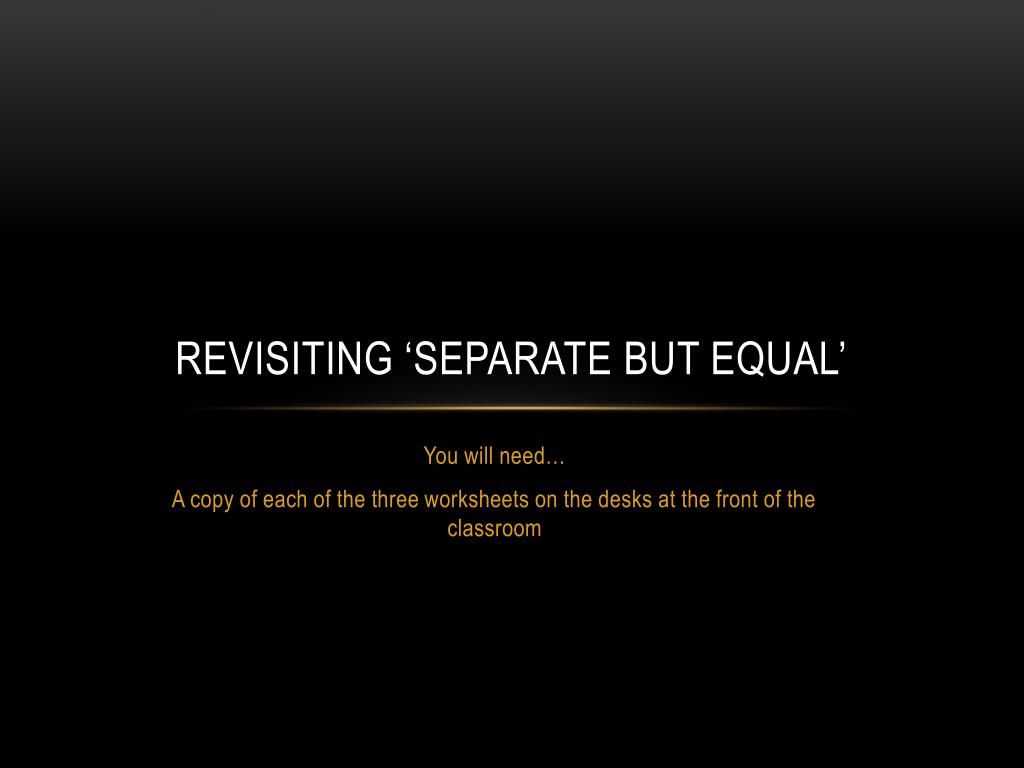 Revisiting ‘Separate but equal’ You will need… A copy of each of the three worksheets on the desks at the front of the classroom