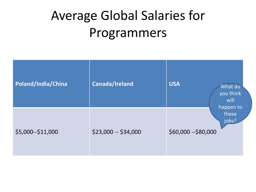 Average Global Salaries for Programmers What do you think will happen to these jobs?