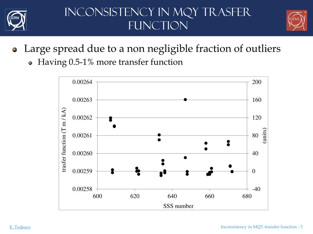 CERN, 7 th August 2012 LBOC. INCONSISTENCIES IN THE MQY TRANSFER FUNCTION. P. Hagen, E . Todesco CERN, Geneva Switzerland. INCONSISTENCY IN MQY TRASFER FUNCTION. In general a superconducting magnet trasfer function has a spread of 5-15 units