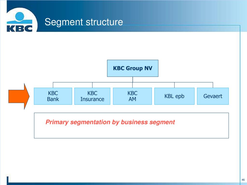 Segment structure KBC Group NV KBCBank KBCInsurance KBCAM KBL epb Gevaert Primary segmentation by business segment