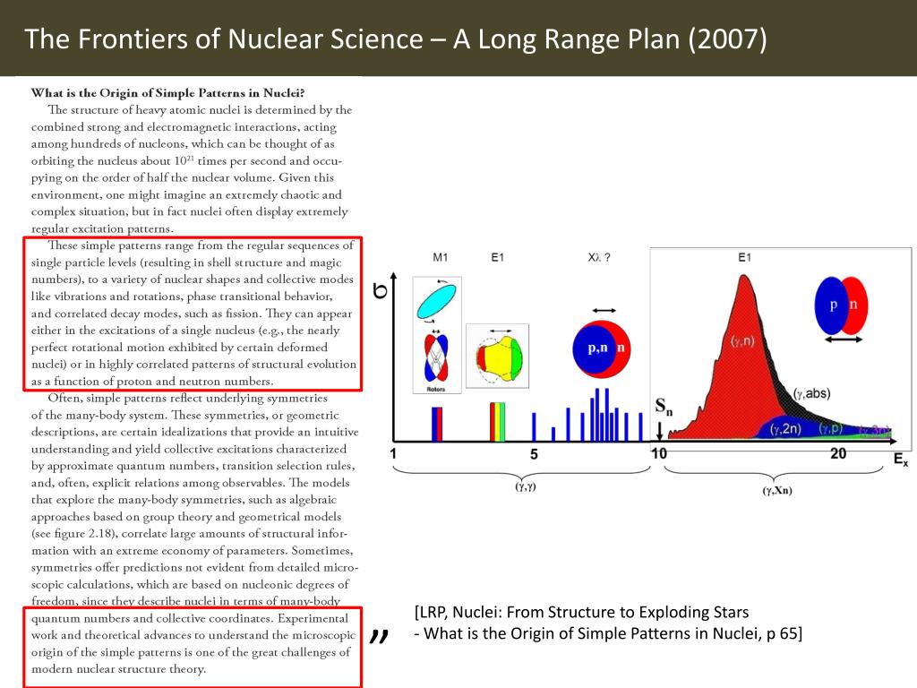 The Frontiers of Nuclear Science – A Long Range Plan (2007) “ [LRP, Nuclei: From Structure to Exploding Stars - What is the Origin of Simple Patterns in Nuclei, p 65] ”