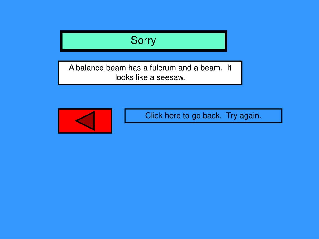 Sorry A balance beam has a fulcrum and a beam. It looks like a seesaw. Click here to go back. Try again.
