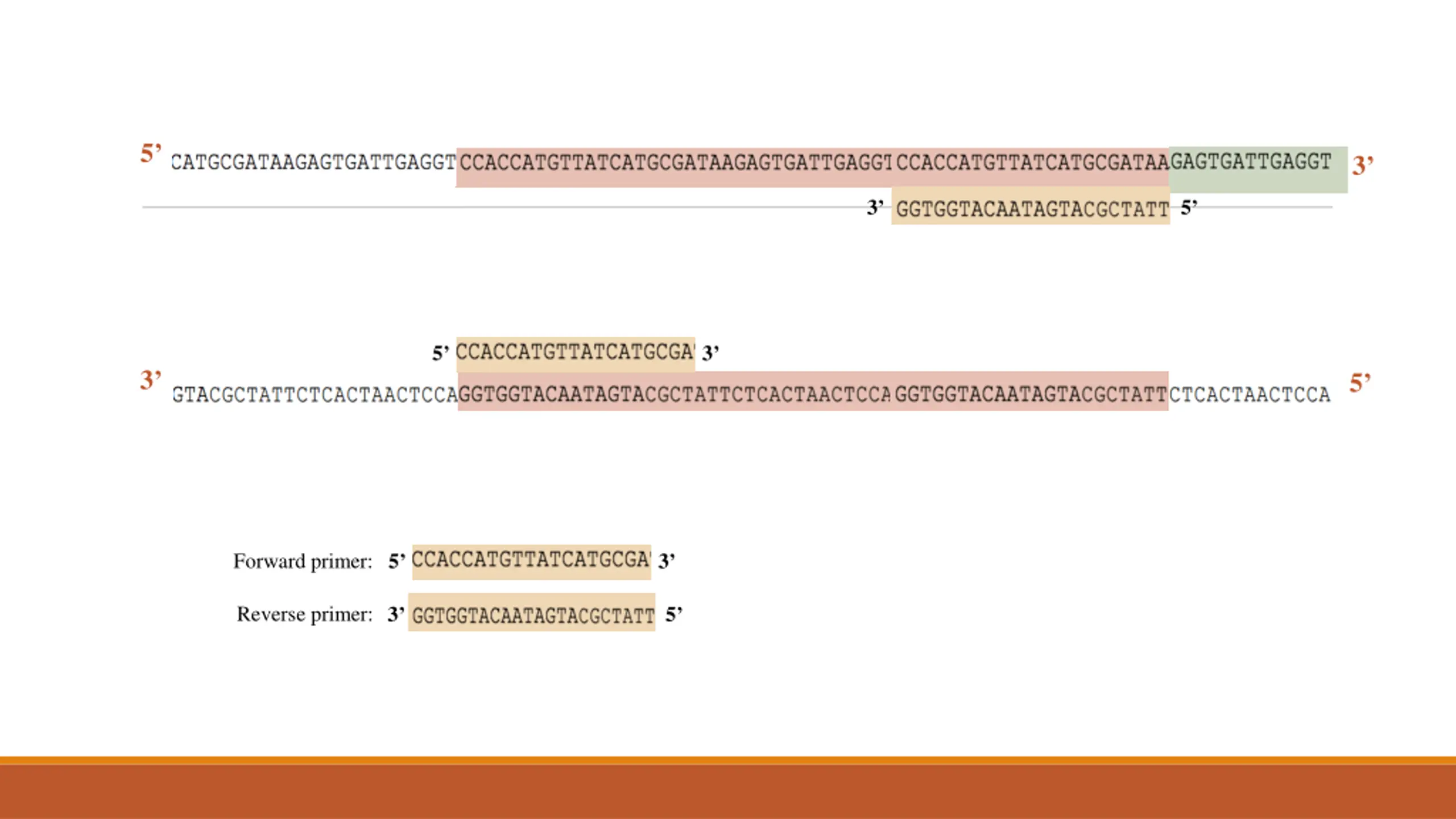 10. 5’ 3’ 3’ 5’ 3’ 5’ 3’ 5’ 3’ 5’ Forward primer: 3’ 5’ Reverse primer: