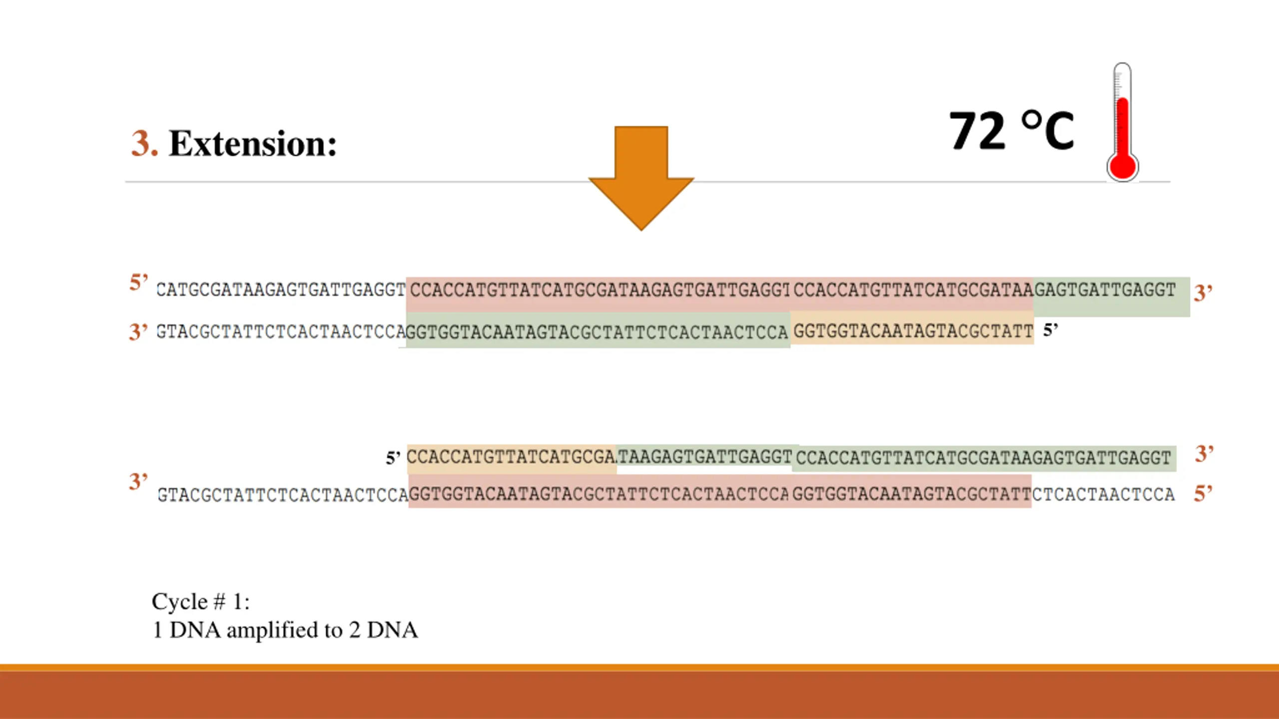 12. 72 °C 3. Extension: 5’ 3’ 3’ 3’ 5’ 3’ 5’ 3’ 5’ 3’ Cycle # 1: 1 DNA amplified to 2 DNA