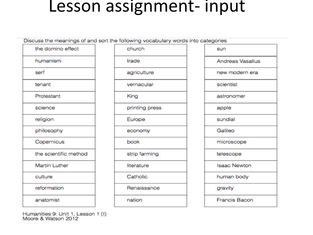 Multiple Goals Goals for Humanities 9 Unit: The Modern Age • The domino effect • Analyse effects of science & technology to the new modern era • Analyse effects of shift in power form the church to the kings in the new modern era • Analyse the effect of the shift in humanities and arts in the new modern era • Analyzing the effects of prosperity in agriculture and trade in the new modern era S, Moore Adaptations & Modifications- SDL 2012
