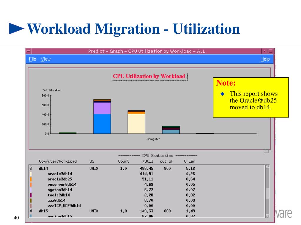 Workload Migration - Utilization • Note: • This report shows the Oracle@db25 moved to db14.