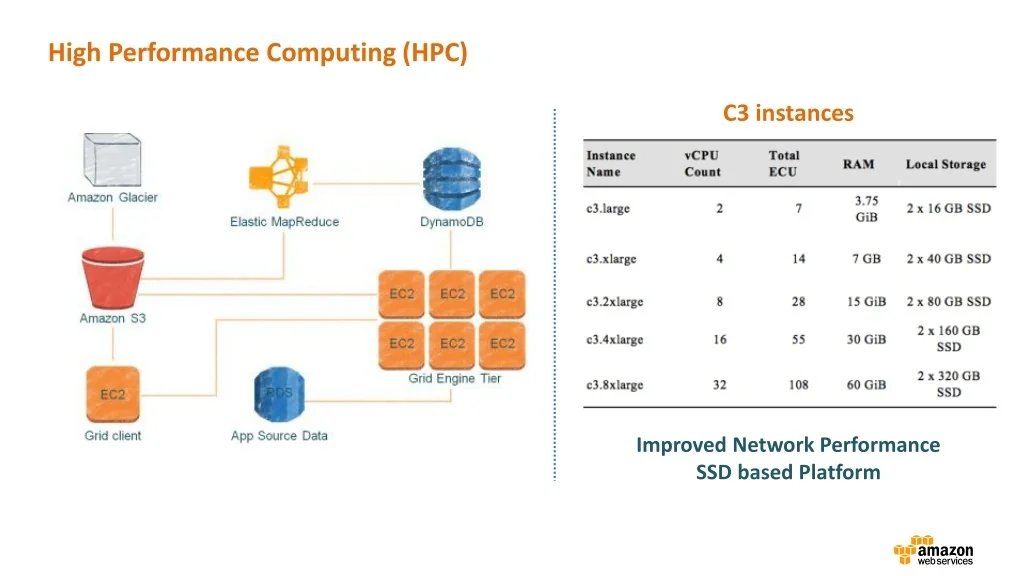 High Performance Computing (HPC) C3 instances Improved Network Performance SSD based Platform