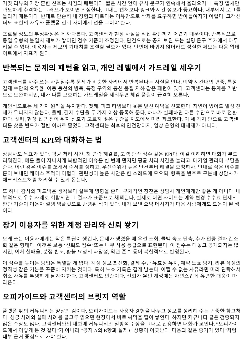 거짓리뷰의가장흔한신호는시점과패턴이다. 짧은시간안에유사문구가연속해서올라오거나, 특정업체만 과도하게추격하는그래프가보이면의심한다. 그때는캡처보다링크와시간정보가중요하다. 내부에서로그를 돌리기때문이다. 반대로단순히내경험과다르다는이유만으로삭제를요구하면받아들여지기어렵다. 고객센 터도표현의자유와플랫폼신뢰사이에서선을그어야한다. 프로필정보의부정확성은더까다롭다. 고객센터가현장사실을직접확인하기어렵기때문이다. 반복적으로 동일유형의불일치제보가쌓이면검수기준이조정된다. 단건으로는공지보완또는설명문구추가에서마무 리될수있다. 이용자는제보의기대치를조절할필요가있다. 단번에바뀌지않더라도성실한제보는다음업데 이트에서지표가된다. 반복되는문제의패턴을읽고, 개인레벨에서가드레일세우기 고객센터를자주쓰는사람일수록문제가비슷한자리에서반복된다는사실을안다. 예약시간대의편중, 특정 결제수단의오류율, 이동동선의병목, 특정구역의통신품질저하같은패턴이있다. 고객센터는통계를기반 으로보완하지만, 내가나를보호하는가드레일을세워두면체감품질이급격히오른다. 개인적으로는세가지원칙을유지한다. 첫째, 피크타임보다 30분앞선예약을선호한다. 지연이있어도일정전 체가무너지지않는다. 둘째, 결제수단을두가지이상등록해둔다. 하나가실패하면다른수단으로바로전환 한다. 셋째, 현장접근전에위치신호가고르지않은구간을지도에서미리체크한다. 이세가지만으로고객센 터를찾을빈도가절반이하로줄었다. 고객센터는최후의안전망이지, 일상운영의대체재가아니다. 고객센터의 KPI와대화하는법 상담사도목표가있다. 평균처리시간, 첫연락해결률, 고객만족점수같은 KPI다. 이걸이해하면대화가부드 러워진다. 예를들어지나치게복합적인이슈를한번에던지면평균처리시간을늘리고, 대기열관리에부담을 준다. 이런경우이슈를쪼개서순서를정하고, 우선순위가높은단건부터해결을요청하자. 반대로작은이슈를 흩어보내면케이스추적이어렵다. 관련성이높은사안은한스레드에모으되, 항목을번호로구분해상담사가 체크리스트처럼처리할수있게돕는다. 또하나, 감사의피드백은생각보다실무에영향을준다. 구체적인칭찬은상담사개인에게만좋은게아니다. 내 부적으로우수사례로회람되면그절차가표준으로채택된다. 실제로어떤사이트는예약변경수수료면제의 판단기준이이용자설명템플릿으로반영된적이있다. 내가보낸요약메시지가다음사람에게도도움이된셈 이다. 장기이용자를위한계정관리와신뢰쌓기 오래쓰는이용자에게는작은특권이생긴다. 문제가생겼을때우선조회, 콜백속도단축, 추가인증절차간소 화같은형태다. 이것은보통 ‘신뢰도점수’ 또는내부사용등급으로표현된다. 이점수는대놓고공개되지는않 지만, 이체실패율, 분쟁빈도, 환불요청의타당성, 약관준수등이복합적으로반영된다. 이점수를높이는방법은특별할게없다. 계정정보최신화, 결제수단유효성유지, 예약노쇼방지, 리뷰작성의 정직성같은기본을꾸준히지키는것이다. 특히노쇼기록은길게남는다. 어쩔수없는사유라면미리연락해서 취소사유를투명하게남겨야한다. 고객센터도인간이다. 신뢰가쌓인계정에는자연스럽게유연한대응이따 라온다. 오피가이드와고객센터의브릿지역할 플랫폼밖의커뮤니티는양날의검이다. 오피가이드는사용자경험을나누고정보를정리해주는귀중한참고처 다. 성공사례와실패사례를골고루읽으면현장에서바로써먹을팁이쌓인다. 하지만커뮤니티글은검증되지 않은주장도많다. 고객센터와의대화에커뮤니티의일방적주장을그대로인용하면대화가꼬인다. “오피가이 드에서이렇게본것같다”가아니라 “공지 A의 B항과실제 C 상황이어긋난다, 다음과같은증거가있다”처럼 내부근거중심으로가야한다.