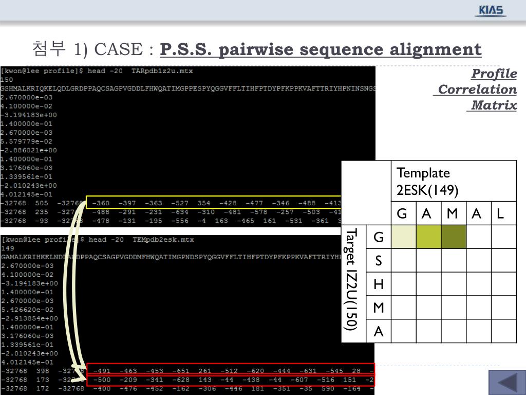 첨부 1) CASE : P.S.S. pairwise sequence alignment Profile Correlation Matrix