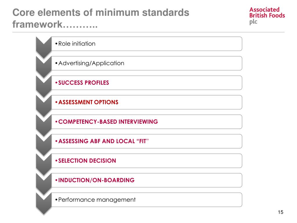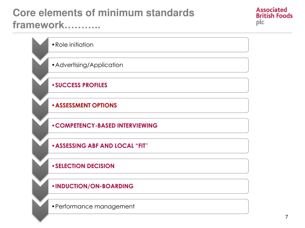 Associated British Foods plc. Minimum Standards in Selection: GWF May 2013. Agenda . Opening – why are we here? Purpose and outcomes Introductions and housekeeping Minimum Standards in Selection – a Framework Next Steps. HRD Conference Seville 2011.