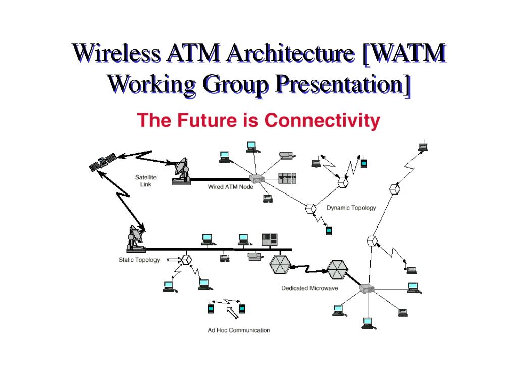 Service Scenarios • Workplace - the main market of today, TCP/IP applications, legacy LAN backbone • Home - universal access point: Internet connection, cordless telephone, flexible speakers, etc. backbone unknown (ATM preferred). • Nomadic public access - backbone unknown, easier traffic policing and charging with WATM.