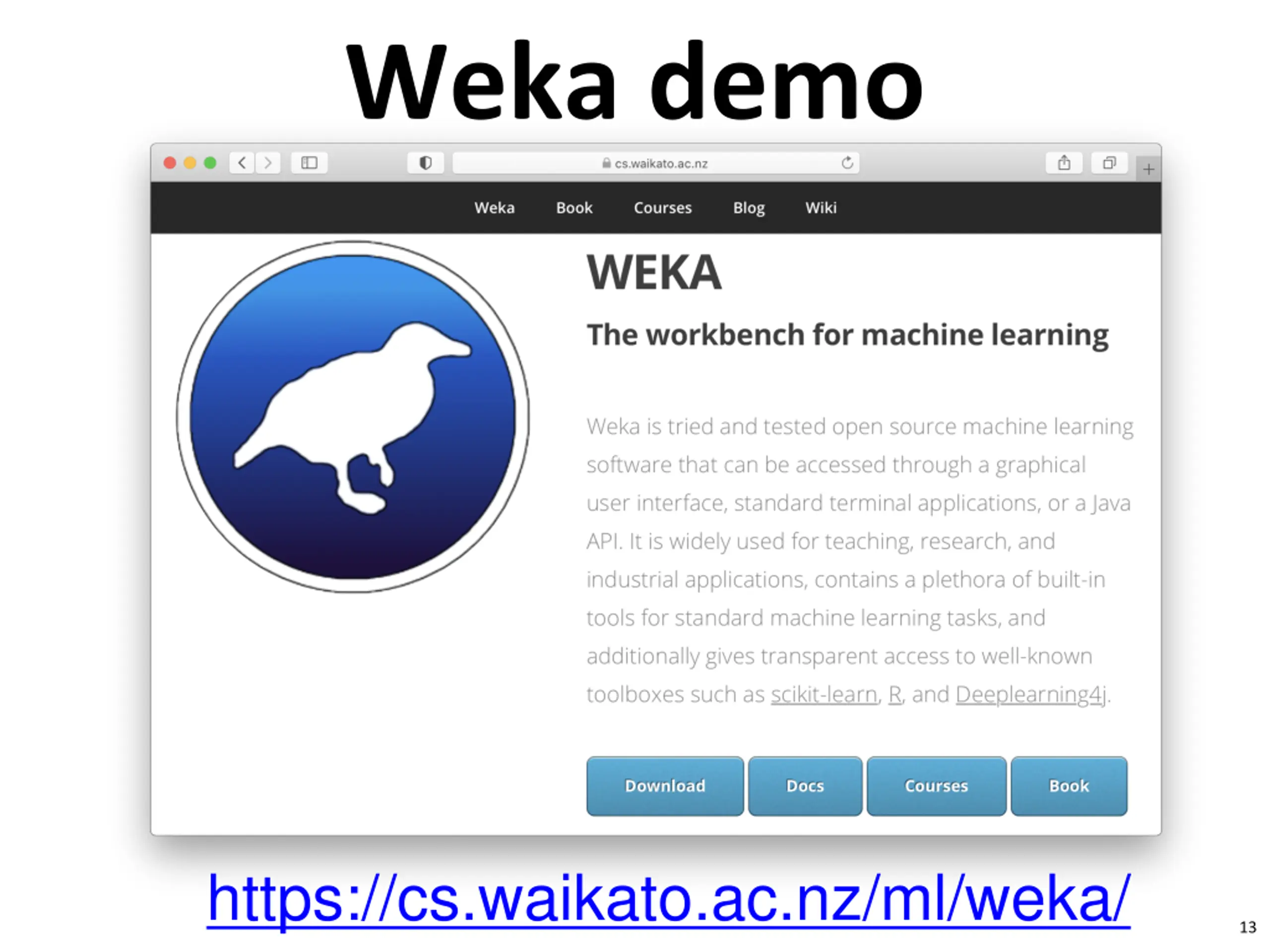 Weka demo https://cs.waikato.ac.nz/ml/weka/ 13