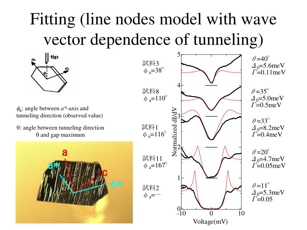 Fitting (line nodes model with wave vector dependence of tunneling) a: angle between a*-axis and tunneling direction (observed value) • : angle between tunneling direction • and gap maximum