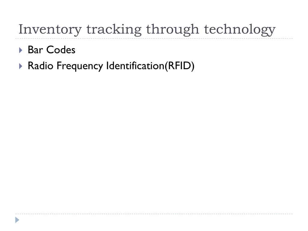 Inventory tracking through technology • Bar Codes • Radio Frequency Identification(RFID)