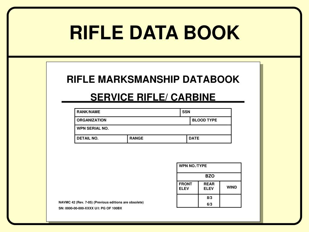 RIFLE DATA BOOK. BEFORE FIRING. 200 - YARD TRI-FIRE. SITTING. TRUE ZERO. plus WIND =. ZERO. FRONT. REAR. FRONT. REAR. DIRECTION. SPEED. WIND. WIND. ELEVATION. ELEVATION. ELEVATION. ELEVATION. 0.