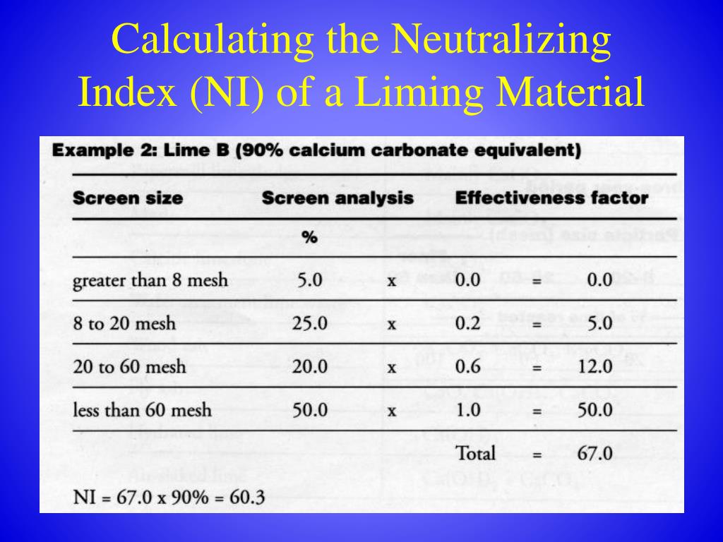 Calculating the Neutralizing Index (NI) of a Liming Material