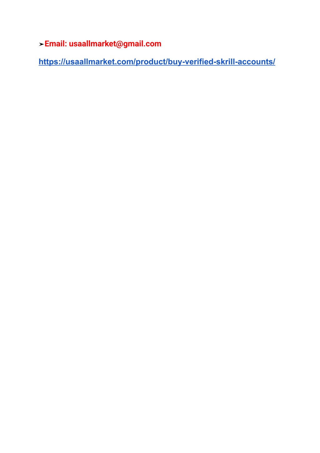 3. Global Accessibility Skrill is available in over 200 countries. This makes it accessible to users worldwide. You can transact in different currencies. This flexibility is useful for international transactions. Skrill supports many languages, making it user-friendly. People from various regions can use it easily. Low Transaction Fees Skrill offers competitive transaction fees. This makes it affordable for users. Lower fees mean you save money on each transaction. This is especially beneficial for frequent users. Skrill provides transparent fee structures, avoiding hidden costs. ✅═══════✮➤➥➥If you want to more information just contact now. ✅═══════✮➤➥24 Hours Reply ✅═══════✮➤➥➤Whatsapp: +18328487734 ✅═══════✮➤➥➤ Telegram:@usaallmarket ✅═══════✮➤➥➤Email: usaallmarket@gmail.com https://usaallmarket.com/product/buy-verified-skrill-accounts/ How To Buy Verified Skrill Accounts Buying verified Skrill accounts can be tricky. But it's worth it. Skrill offers a fast and secure way to manage money online. A verified account ensures safety and trust. Many users prefer a verified account for this reason. It helps in smooth transactions without hassles. The process to buy these accounts must be simple and clear. Let's explore how you can do this efficiently. Trusted Platforms For Purchase Choosing a trusted platform is crucial. Many online platforms offer verified Skrill accounts. Look for reviews and ratings. Reliable platforms have positive feedback. They provide genuine accounts with full verification. Avoid platforms with negative feedback or no reviews. Trusted platforms ensure your money is safe and secure. Verification And Authentication Process The verification process is important. A verified account must pass several checks. This includes identity verification and document submissions. Ensure your purchased account has completed these steps. It ensures the account is legitimate and ready for use.