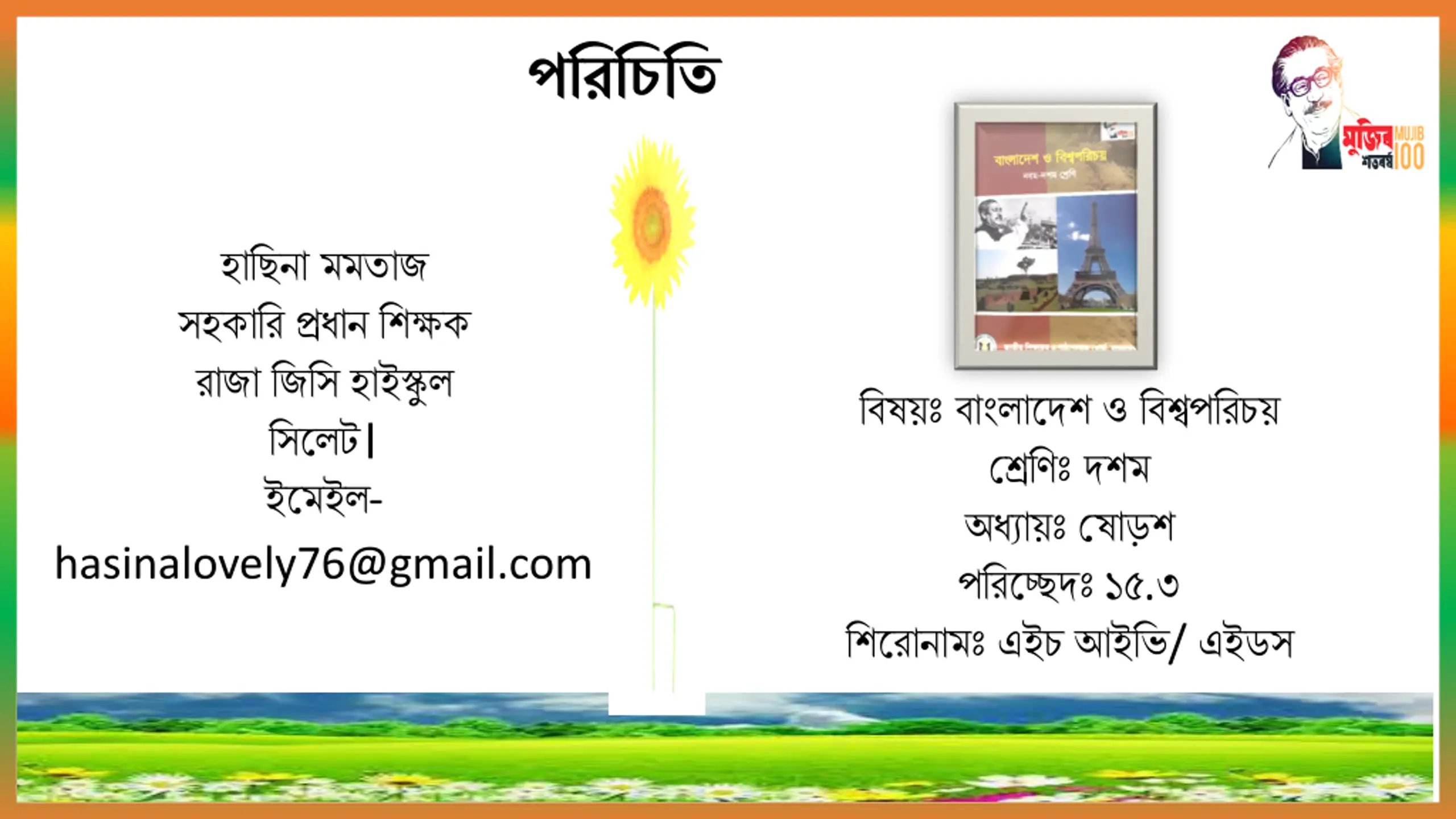 পরিরিরি হাছিনা মমতাজ েহোছর প্রধান ছিক্ষে রাজা ছজছে হাইস্কুল ছেকলট। ইকমইল- hasinalovely76@gmail.com ছবষয়ঃ বাাঃলাকেি ও ছবশ্বপছরচয় শ্রেছ ঃ েিম অধযায়ঃ শ্রষাড়ি পছরকেেঃ ১৫.৩ ছিকরানামঃ এইচ আইছি/ এইডে