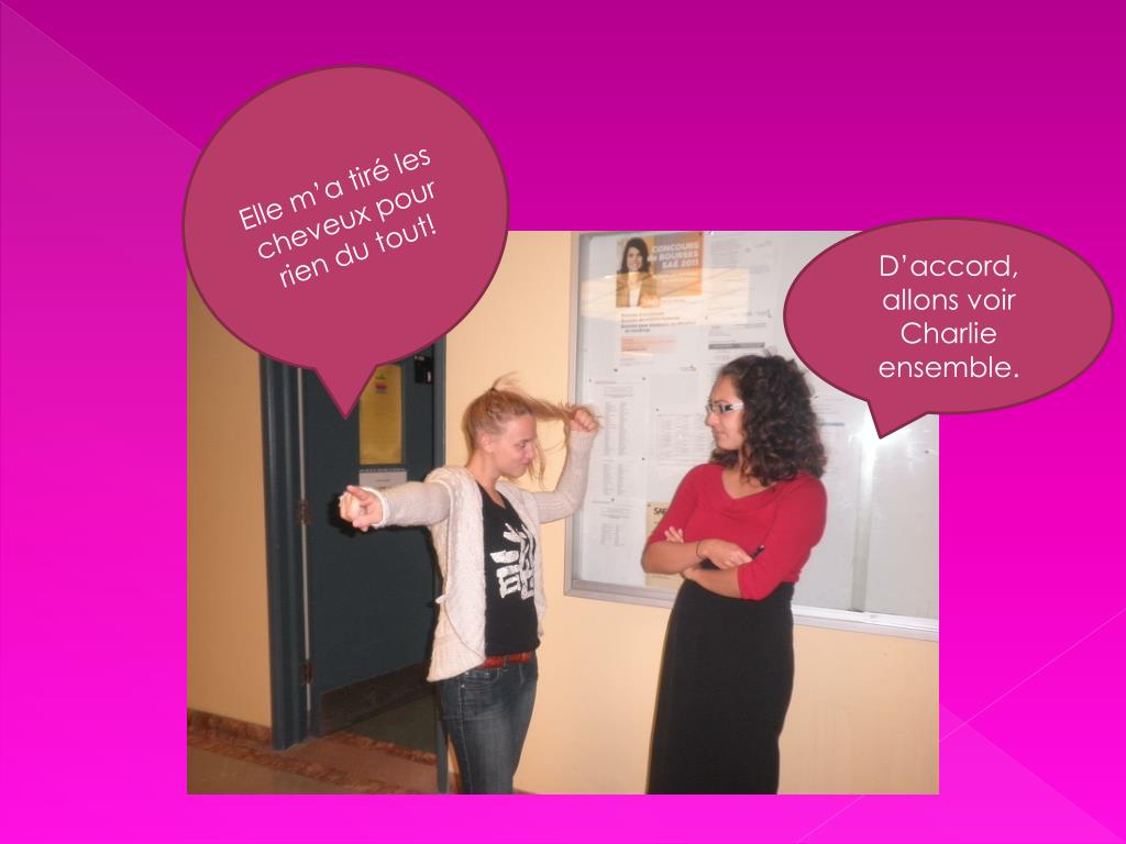 Elle m’a tiré les cheveux pour rien du tout! D’accord, allons voir Charlie ensemble.