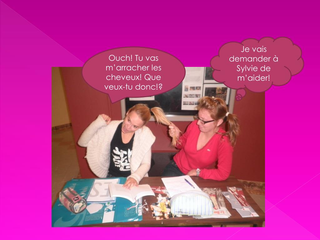 Je vais demander à Sylvie de m’aider! Ouch! Tu vas m’arracher les cheveux! Que veux-tu donc!?