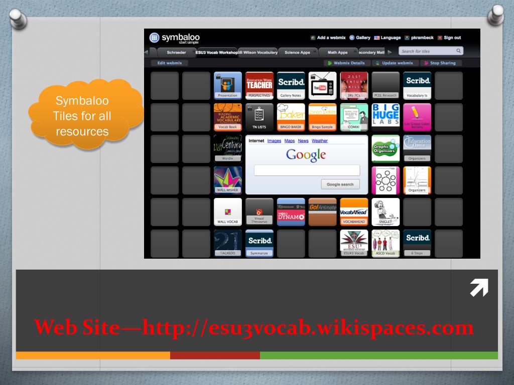 SymbalooTiles for all resources Web Site—http://esu3vocab.wikispaces.com