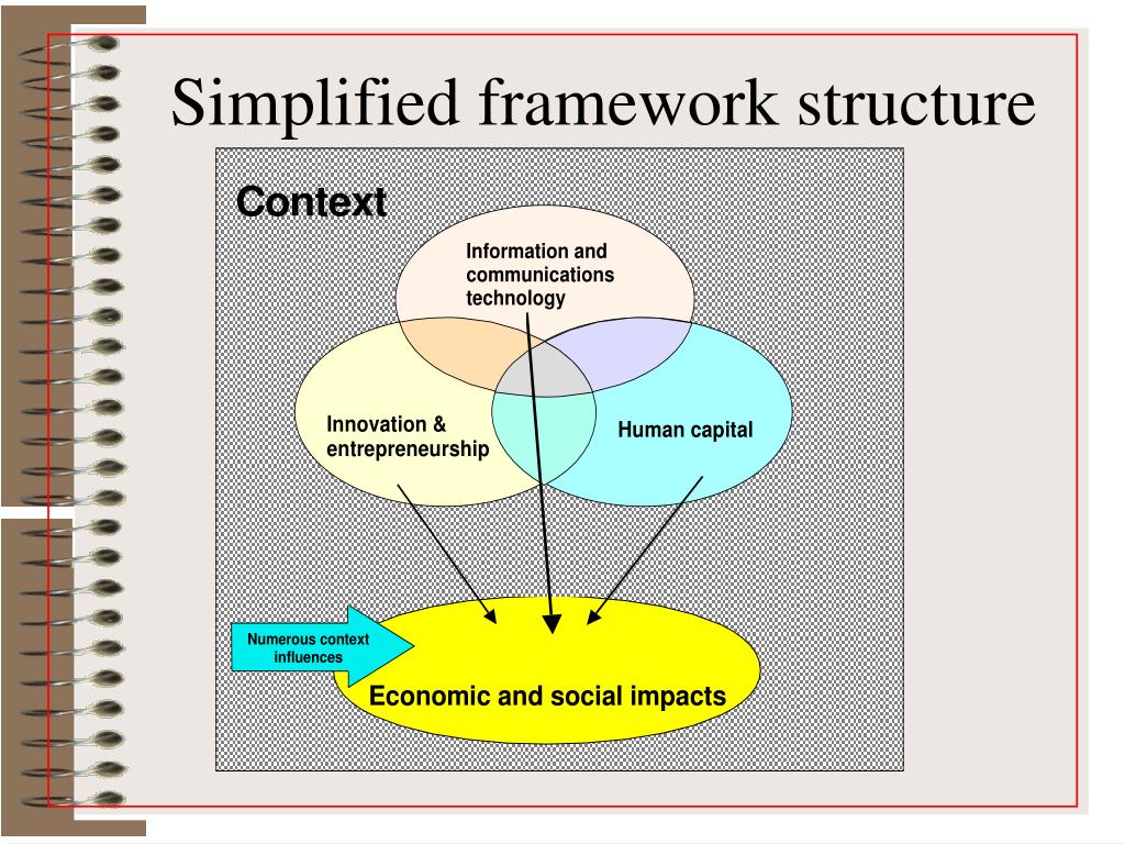 Structure of the KBE/S framework • Three core dimensions • Innovation and entrepreneurship • Human capital • Information and communications technology. • Two supporting dimensions • Context • Economic and socialimpacts.