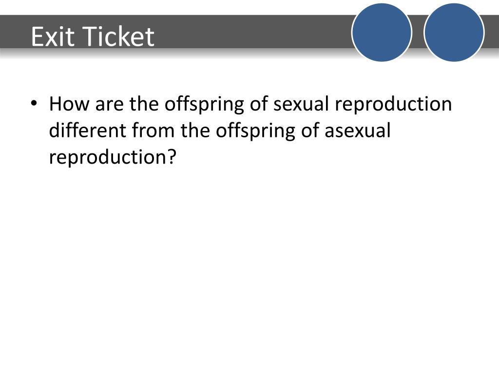 Exit Ticket • How are the offspring of sexual reproduction different from the offspring of asexual reproduction?