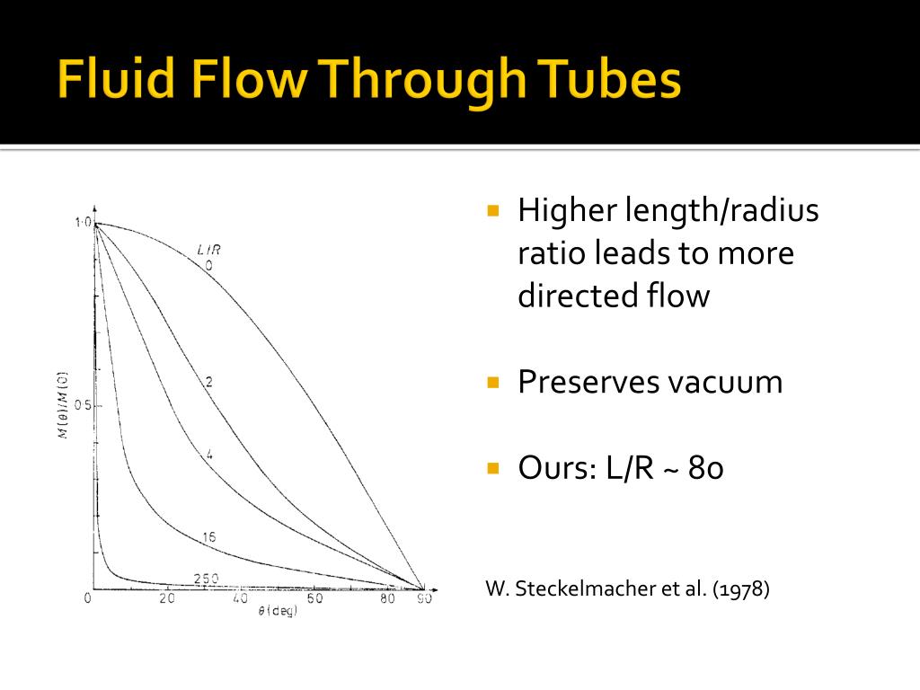 Fluid Flow Through Tubes • Higher length/radius ratio leads to more directed flow • Preserves vacuum • Ours: L/R ~ 80 W. Steckelmacher et al. (1978)