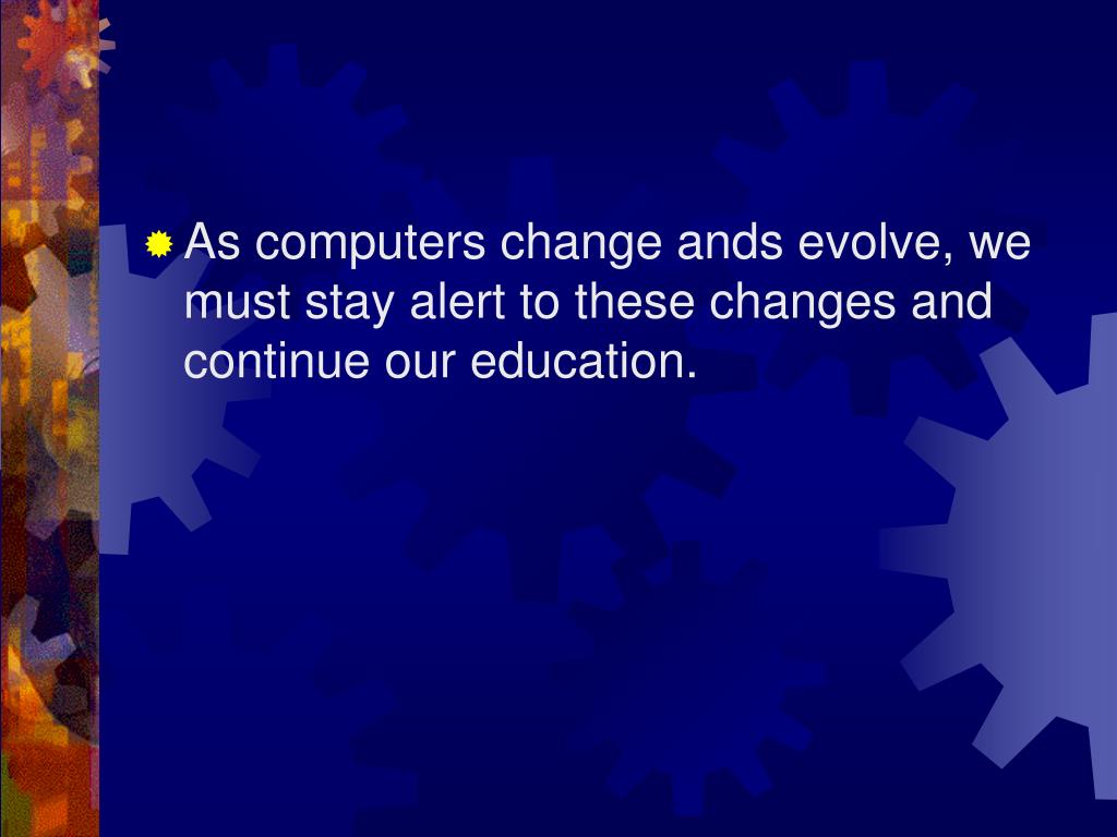 As computers change ands evolve, we must stay alert to these changes and continue our education.