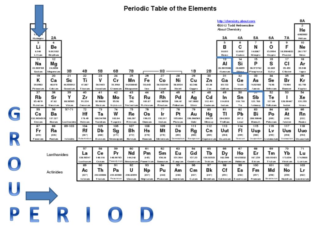 GROUP Metals Nonmetals E R I O D Metalloids Nobel Gases